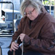 Kate Morrison et la chaise bleue sous le Pont Couvert